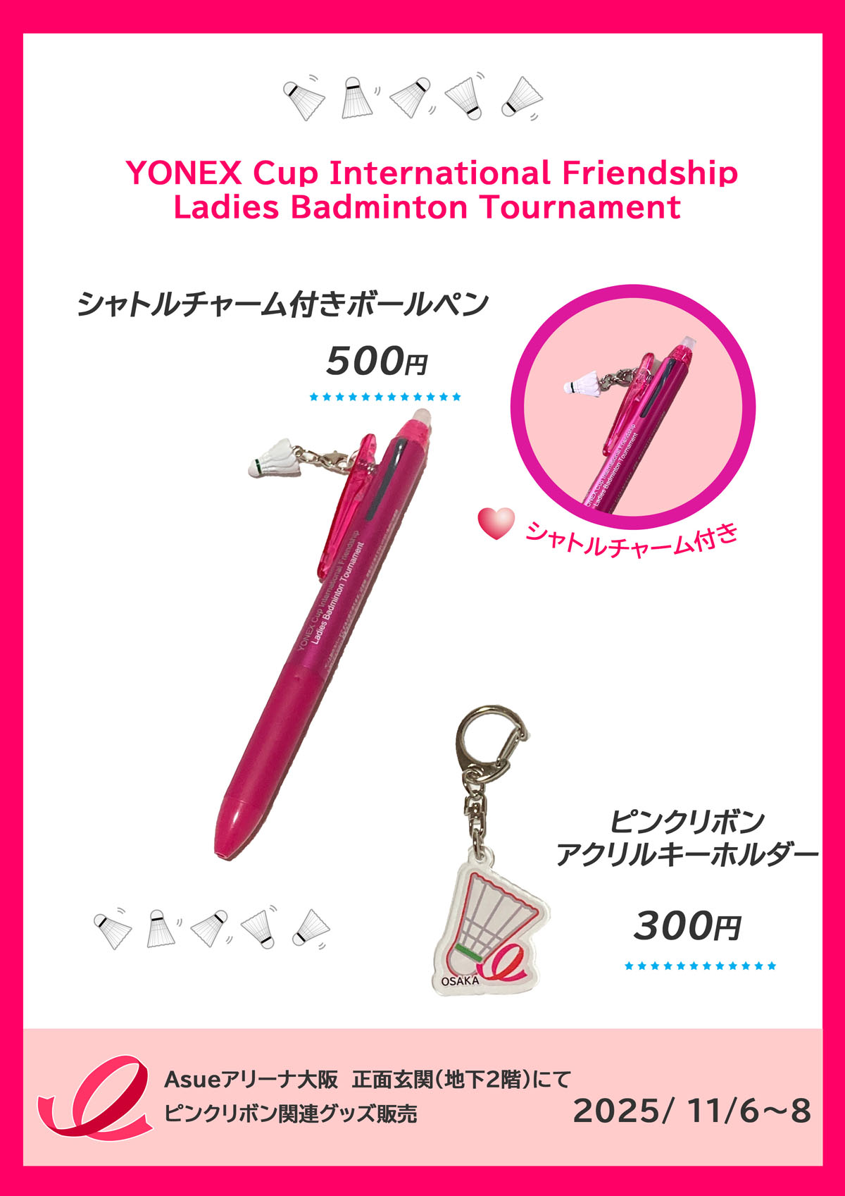 大阪府レディースバドミントン連盟は女性の社会活動を応援し、乳がんの早期発見、早期治療の啓発活動を支援しています。
