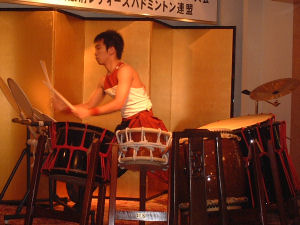 ウエルカムパーティー 江村美代子会長の挨拶と和太鼓