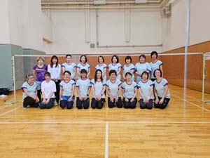 当クラブは1983年創部のチームです。 バドミントンとお喋りが大好きな30〜70代のメンバーで週2回楽しく練習しています。 コーチにもご指導頂き、リーグ優勝を目指して日々頑張っています。 部内ゲーム大会や忘年会などのイベントもいつも盛り上がり、笑いの絶えないチームです。